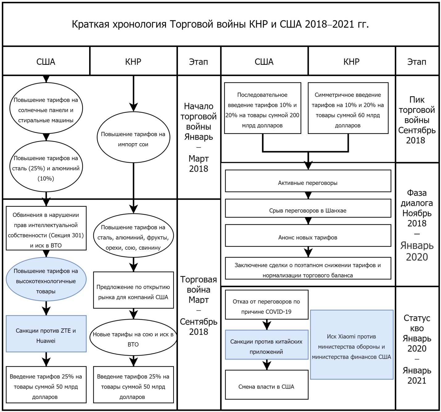 Source: compiled by the authors based on: The US — China Trade War: A Timeline // China Briefing. August 25, 2020. URL: https://www.china-briefing.com/news/the-us-china-trade-war-a-timeline/ (accessed: 02.02.2021).