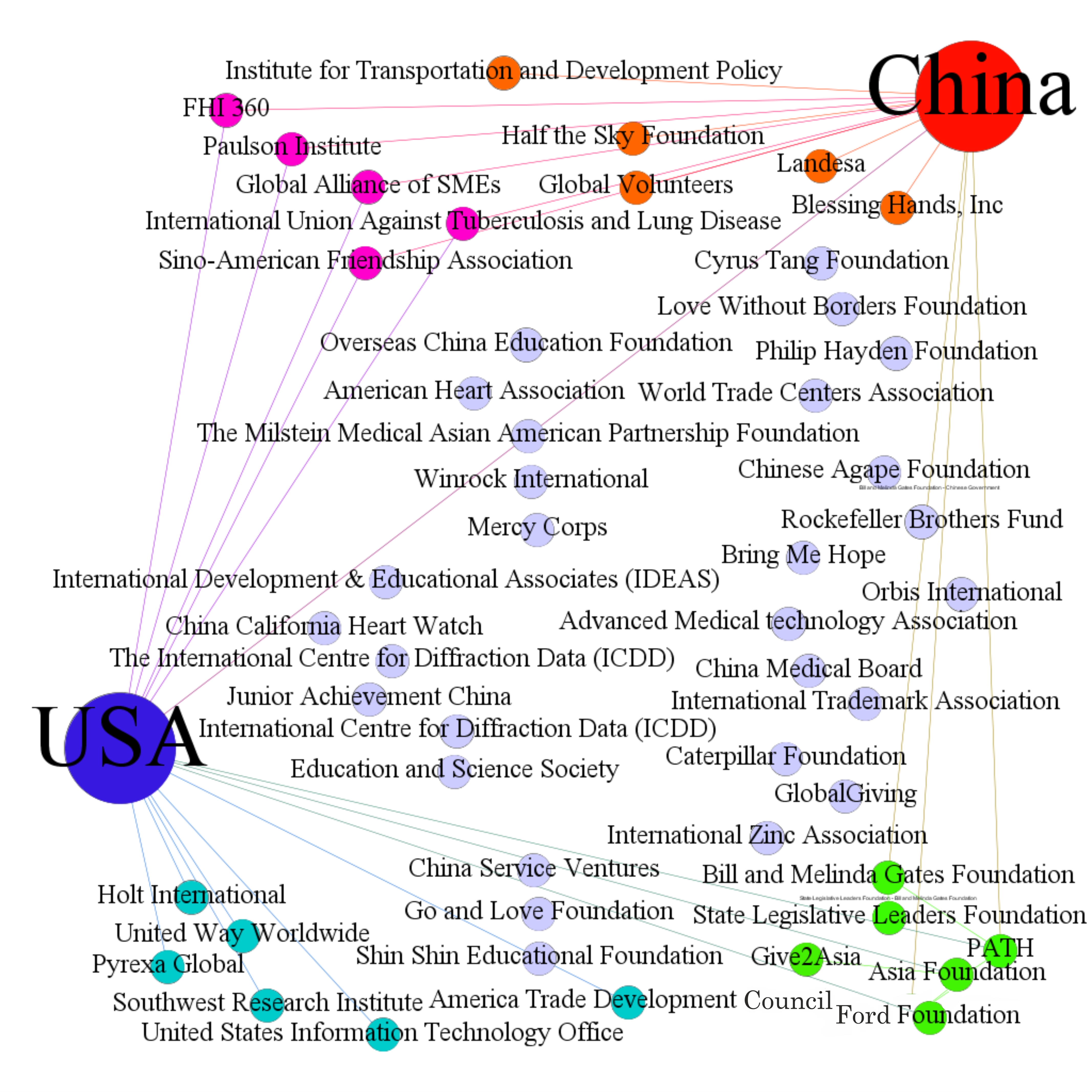 Fig. 1. Map of American NPOs in the PRC and their network of partnerships
