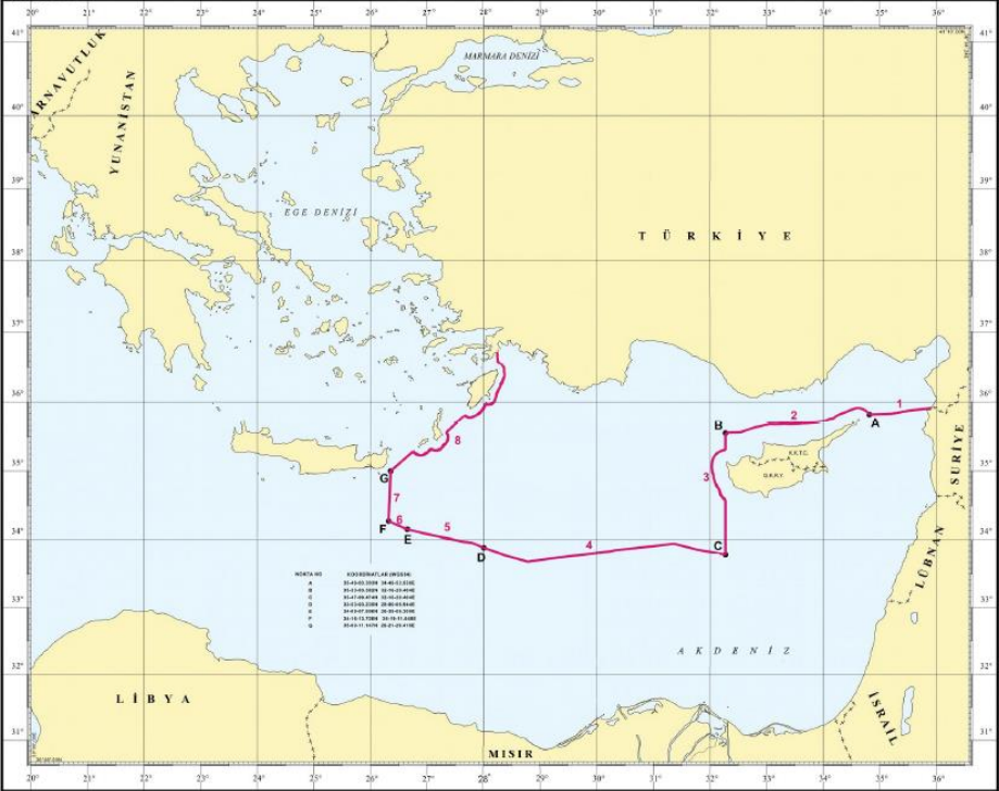 Во-вторых, очерчивание зон суверенитета и юрисдикции Турции, включая внешние границы территориального моря, исключительной экономической зоны и континентального шельфа.