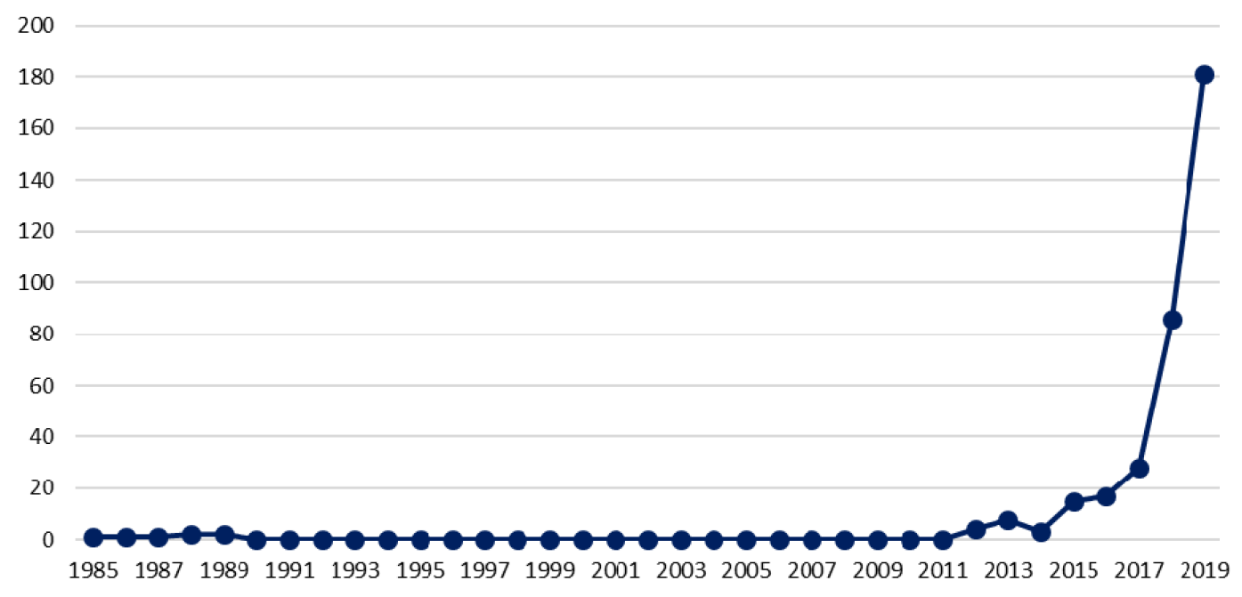 Fig 1. Dynamics of terrorist activity in the G5 Sahel countries according to Global Terrorism Database, 1985—2019