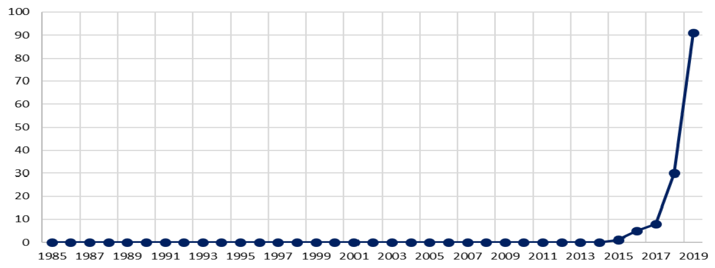 Fig. 4. Dynamics of terrorist activity in Burkina Faso according to Cross-National Time-Series Data Archive, 1985—2019
