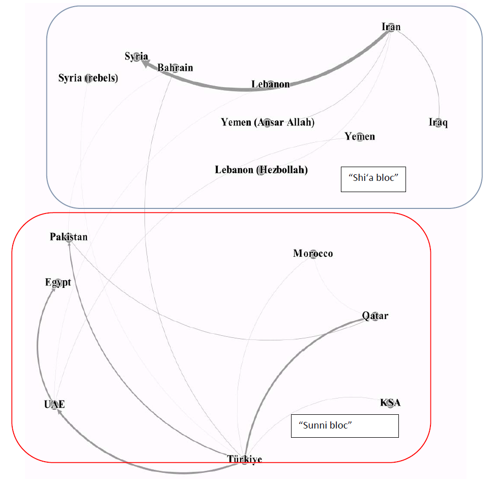 Figure 1. Network Analysis of Conventional Arms Exports between “Sunni” and “Shiʻa” Blocs, 2018—2021*