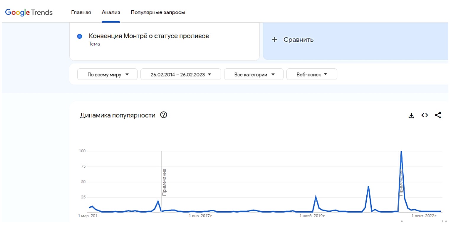 Figure 1. Dynamics of Google Trends Queries on the Topic “Montreux Convention” Since the Return of Crimea to the Russian Federation