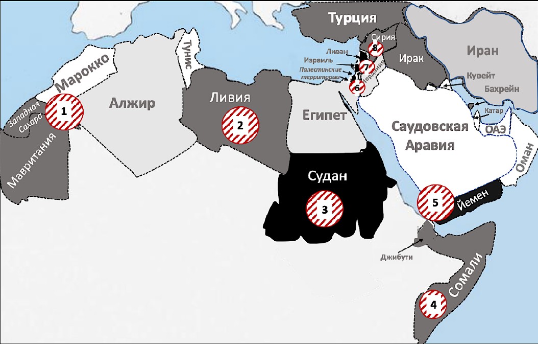 The object of the study is a changing set of destructive and stabilizing factors that determine the political and socio-economic development and modernization of the Global South in the first third of the 21st century at the level of societies, regional systems of international relations (SIRs), and economies. The subject of the study is the “conflict — peaceful development” dichotomy across the Middle East and North Africa (MENA) macro-region.