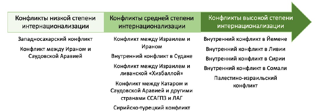 The diversity and growing interdependence of conflicts in the region and beyond form a destabilizing factor, causing geopolitical and geoeconomic shifts. This increases the degree of unpredictability of the situation, as a result creating, although, fortunately, until now limited risks of an incidental casus belli for a large-scale war. For example, Türkiye’s intervention in Libya moves the Libyan conflict from the orbit of Maghreb to the orbit of the Eastern Mediterranean, while the Ukrainian crisis provokes volatility in food markets, hiding risks of a new “Arab Spring.” The domino effect of the war in Gaza has already inspired Israel’s clashes with Iran, Hezbollah, and the Houthis.