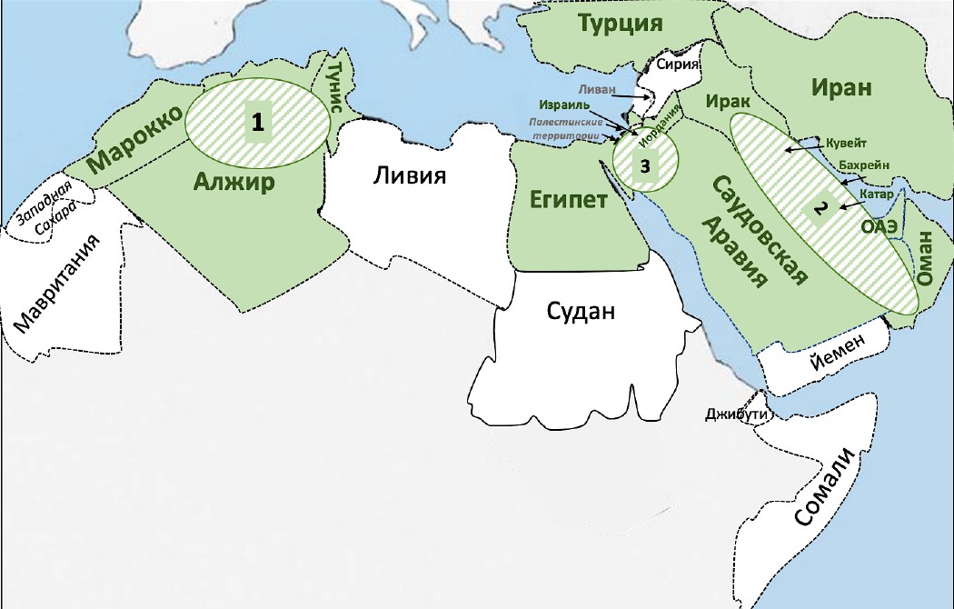 - at the end of the 20th century, the collapse of the bipolar system of international relations caused the loss of interest of the MENA countries in participating in a block interstate confrontation for the sake of economic and financial dividends,