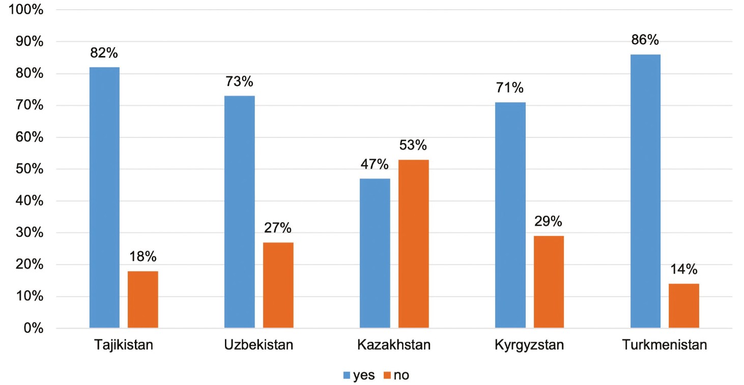 In both cases, it can be seen that fewer than half of the respondents consider themselves to be fluent in Russian. Although a significant number of respondents considers themselves able to read and communicate on general topics without apparent difficulty, according to our observations, there are more respondents who do not know Russian well than the number of those who indicated it in their answers. Additionally, during the exchange of views by representatives of the many universities in which surveys were conducted, it was noted that many students from Central Asia lack knowledge of the Russian language.