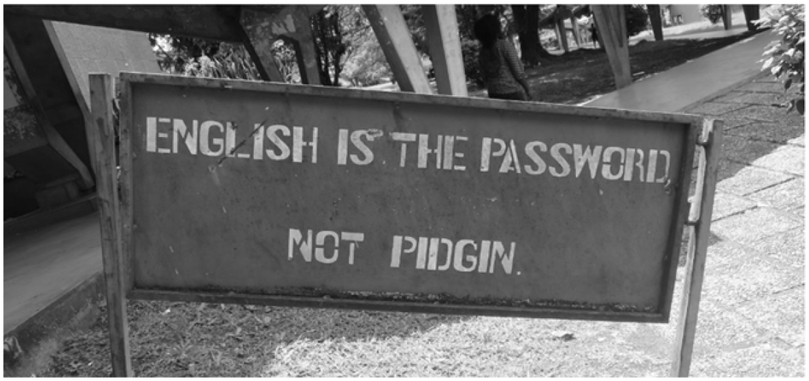 Fig. 12. Signboard shunning Pidgin English on the university campus of Buea