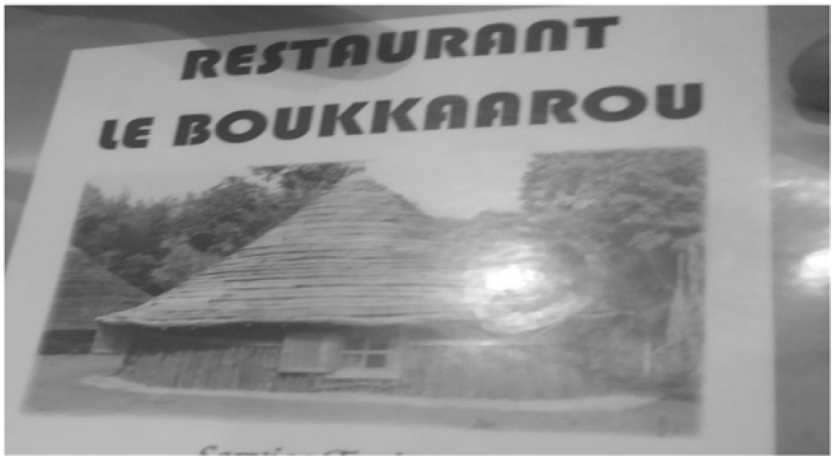 Fig. 16, a poster showing “Restaurant Le Boukkaarou,” is a word of Fulani origin which has been integrated into the French language. It refers to a type of thatched hut covered with hay. It resembles the “Restaurant Boukkaarou” which is here at stake.