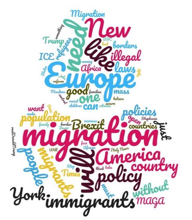The migration issue was chosen on purpose. First, this problem is topical in a number of English-speaking countries, and evokes a variety of feelings in people all over the world. The migration processes resonate through every level of society and are widely discussed on Twitter. On the one hand, migration can reduce the pressure on the labour market in countries where emigration exceeds immigration and encourage people to do manual work in the countries where the opposite is true, providing migrants with low-skilled positions. On the other hand, migration might cause financial problems in the developed countries, reducing the working opportunities for natives and an increase in the crime rates (De Haas et al. 2019). The situation is getting worse in terms of national tension which leads to social stratification.