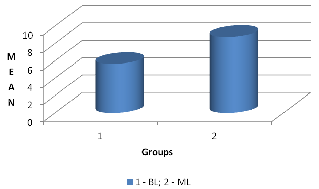 As Figure 1 demonstrates, bilinguals produced fewer VS orders in their discourse than monolinguals (M = 5.65 vs. M = 8.76). A t-test analysis indicated that this difference was reliable t (1.48) = 2.51, p < .01.