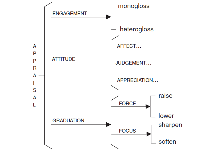 Fig. 1. An overview of the Appraisal framework (Martin & White 2005: 38)