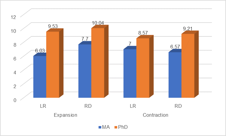 Fig. 3. Expansion and contraction in MA and PhD LR and RD sections