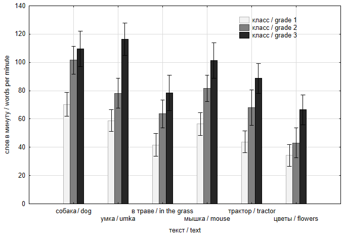 Fig. 2. Average reading speed of the texts by students of grades 1–3