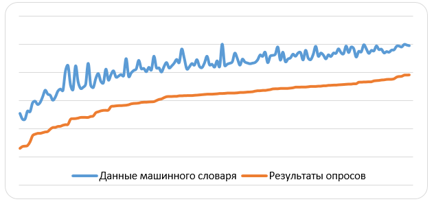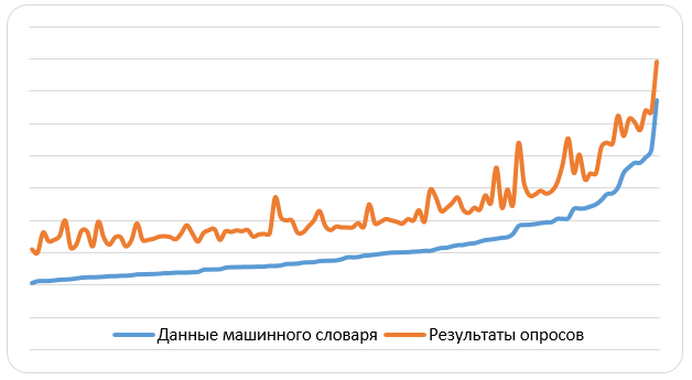 Fig. 10. Positive difference between machine dictionary and survey results data