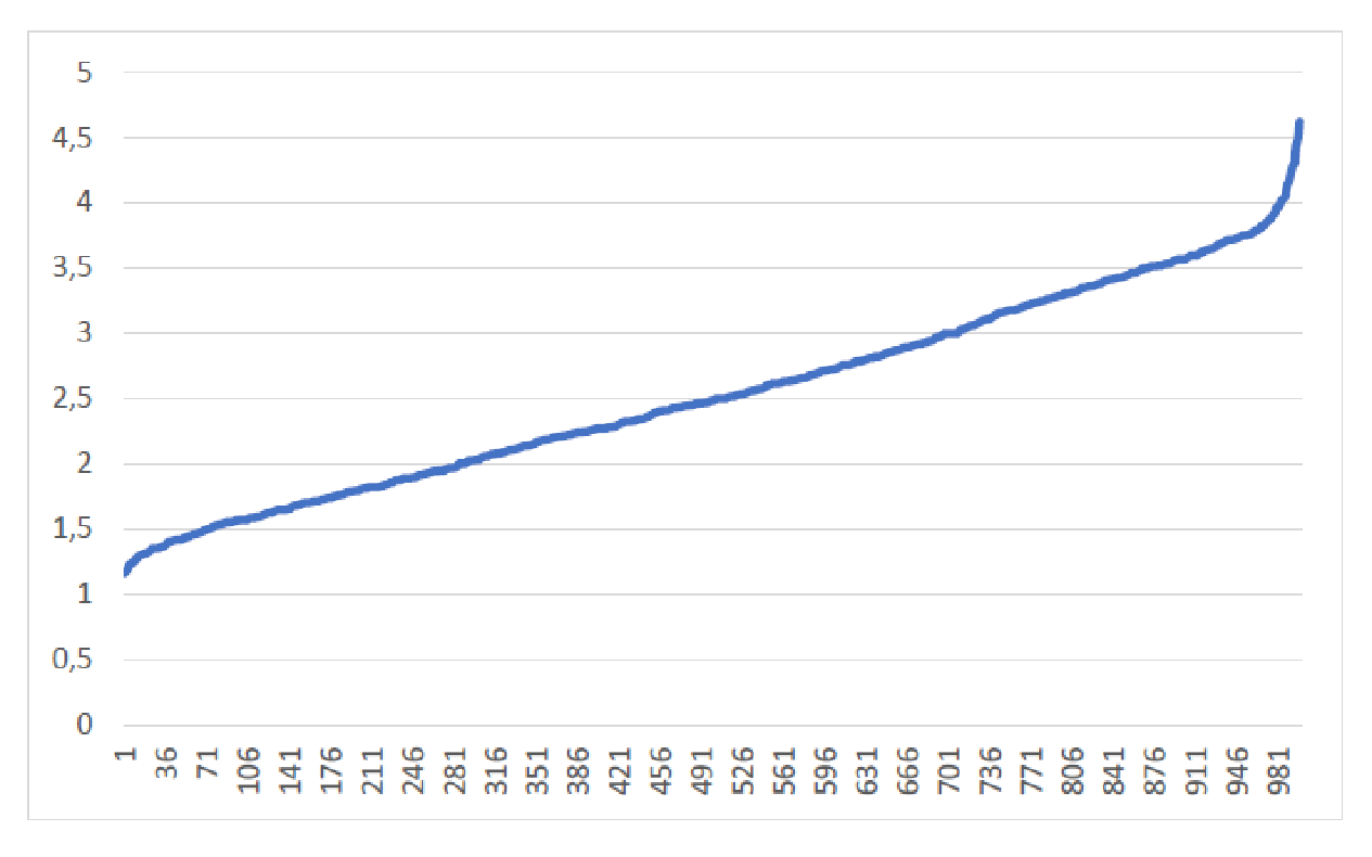 Fig. 3. Histogram of distribution of ratings dispersion
