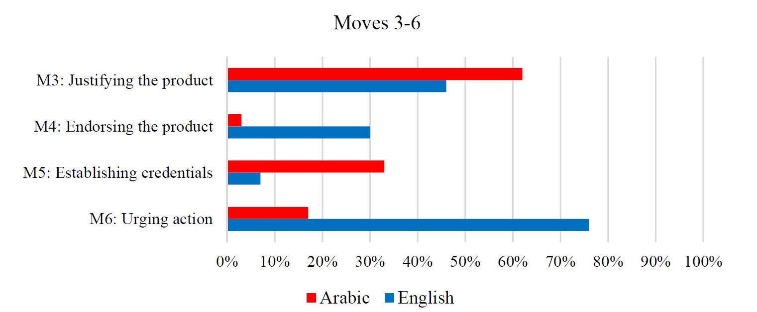 In this section we will first comment on some general findings concerning the rhetorical structure of the English and Arabic online advertisements of skin care products. This is followed by commenting upon the analysis of the different persuasive linguistic features mapped onto moves and/or steps that integrate the rhetorical structure of online advertisements.