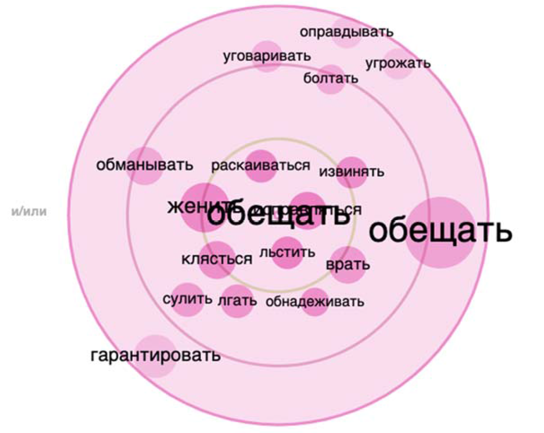 (see Fig. 2): “promise”, “lie”, “flatter”, “lie”, “swear”, “deceive”, “talk”; repetitions ("promise and promise"); ligaments of the condemning vocabulary)
