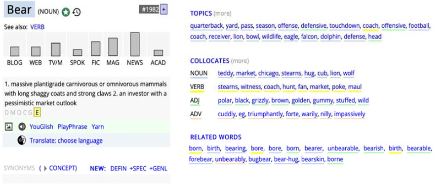 Fig. 1. Fragment of the search by individual word (BEAR as a noun) (COCA)