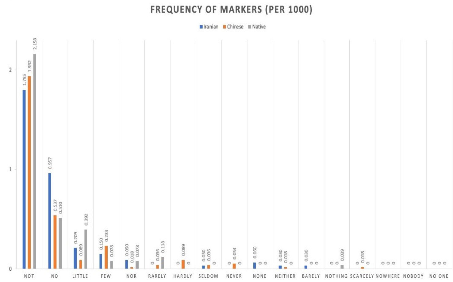 5.1. What negative markers, forms, and functions of negation are utilized in English thesis and dissertation abstracts by the postgraduate students from the three different L1 backgrounds (i.e., English, Chinese, and Iranian)?