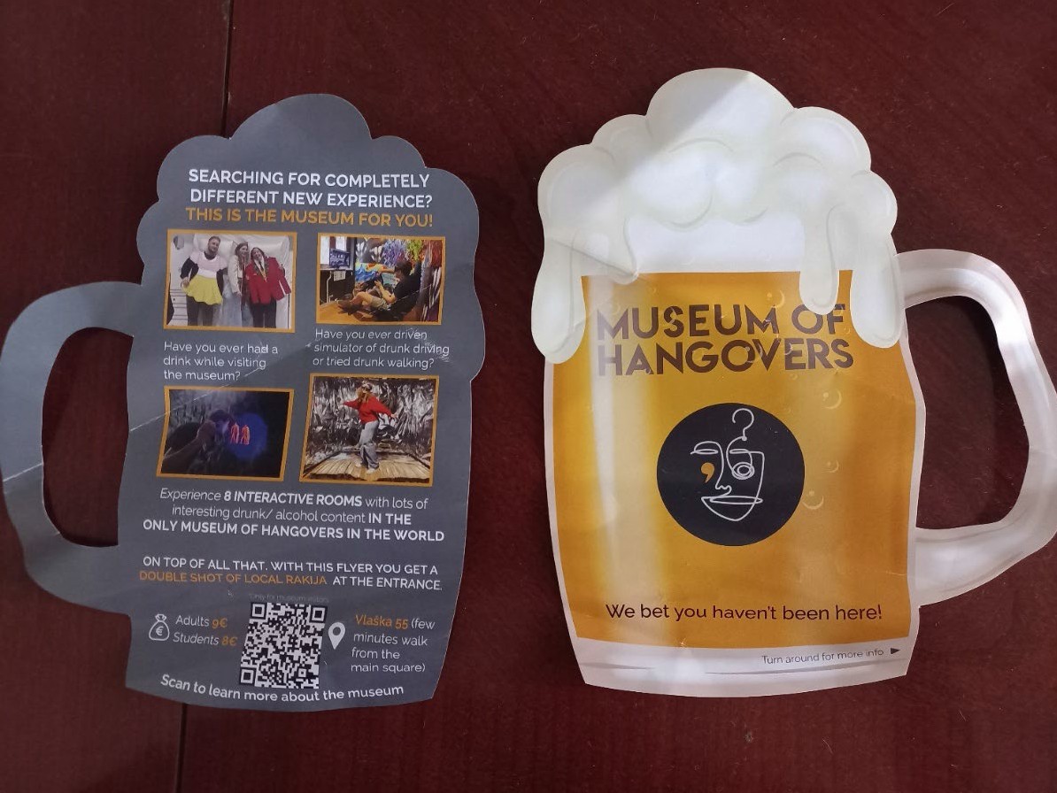 The only Museum of Hangovers in the world is a fun place to experience the best hangover/drunk stories. Enjoy interactive exhibits like drunk driving and drunk walking simulators, plus plenty more cool stuff! Tickets: €9 for adults online (€10 at the entrance), €9 for students and seniors, €7 for children. Come and experience an unforgettable place of forgettable happenings! — (ENA, November 17, 2025)[10]