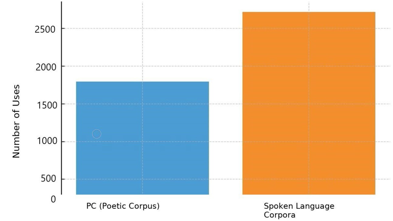 Figure 4. Comparison of MDMs usage: Poetic Corpus vs. Spoken Language Corpora (ipm)