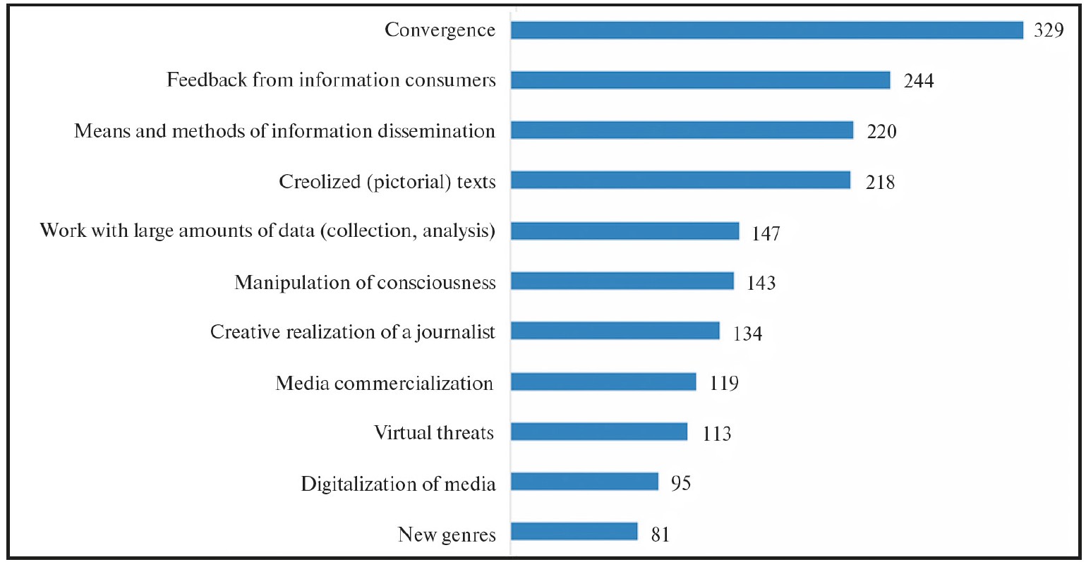 Современный журналист, как и прежде, должен уметь находить информацию, творчески перерабатывать большие объемы данных, работать в различных знаковых системах, рефлексировать по поводу обратной связи. При этом виртуальные угрозы и цифровизация СМИ оказались на последних местах.