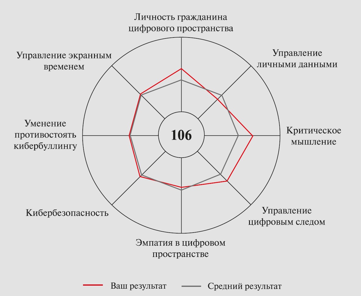 Важно отметить, что критерии оценки отдельных характеристик цифрового интеллекта можно замерить: корейские ученые разработали тесты, которые представляют цифровой профиль личности в виде диаграммы (рис. 3).