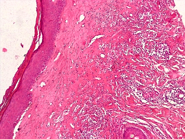 - Yadav D, Agarwal S, Thakur S, Ramam M. Lymphocyte- Peppered Sclerotic Collagen: An Additional Histological Clue in Lichen Sclerosus, Morphea, and Systemic Sclerosis. Am J Dermatopathol. 2021;43(12):935-938. doi: 10.1097/DAD.0000000000002071.