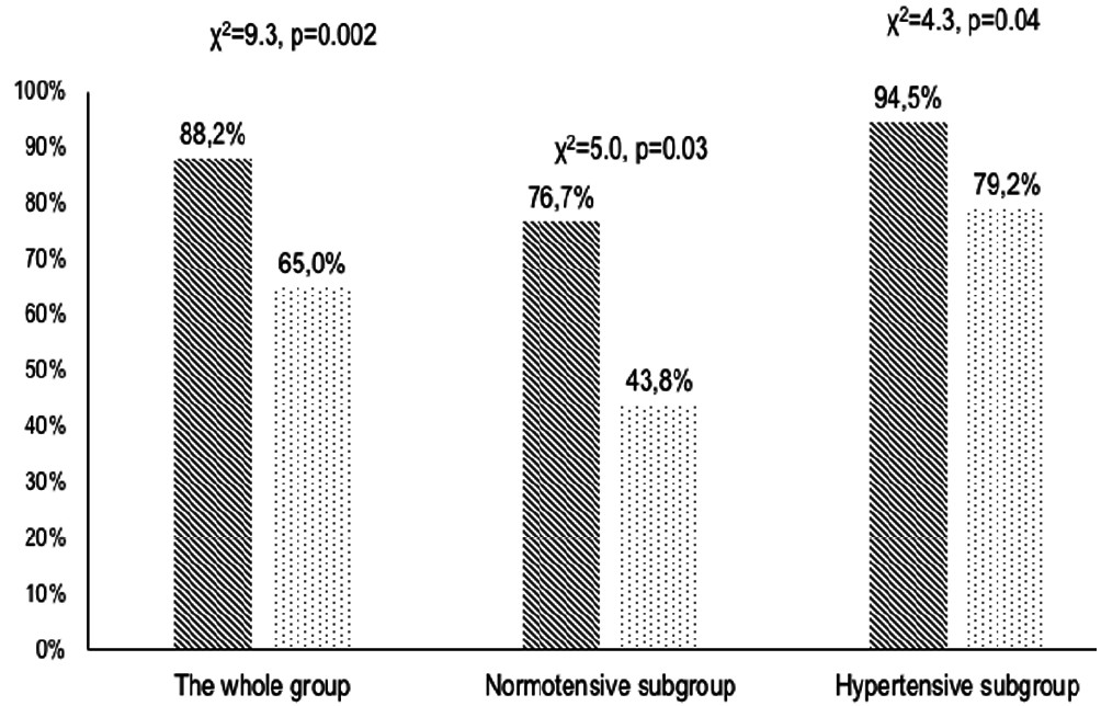 Table 2. Clinical BP and 24-h BP data in study groups, depending on the presence of HTN