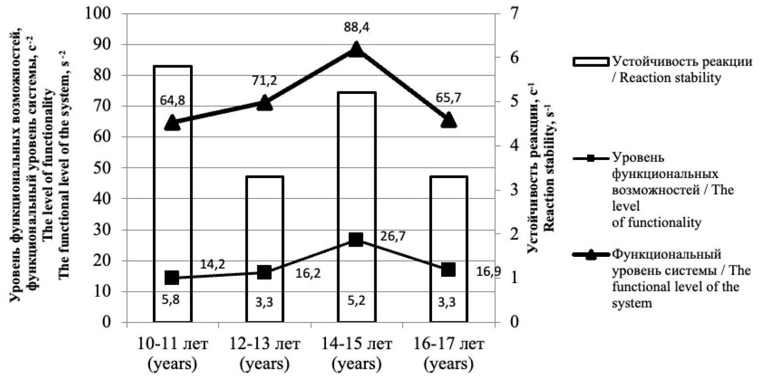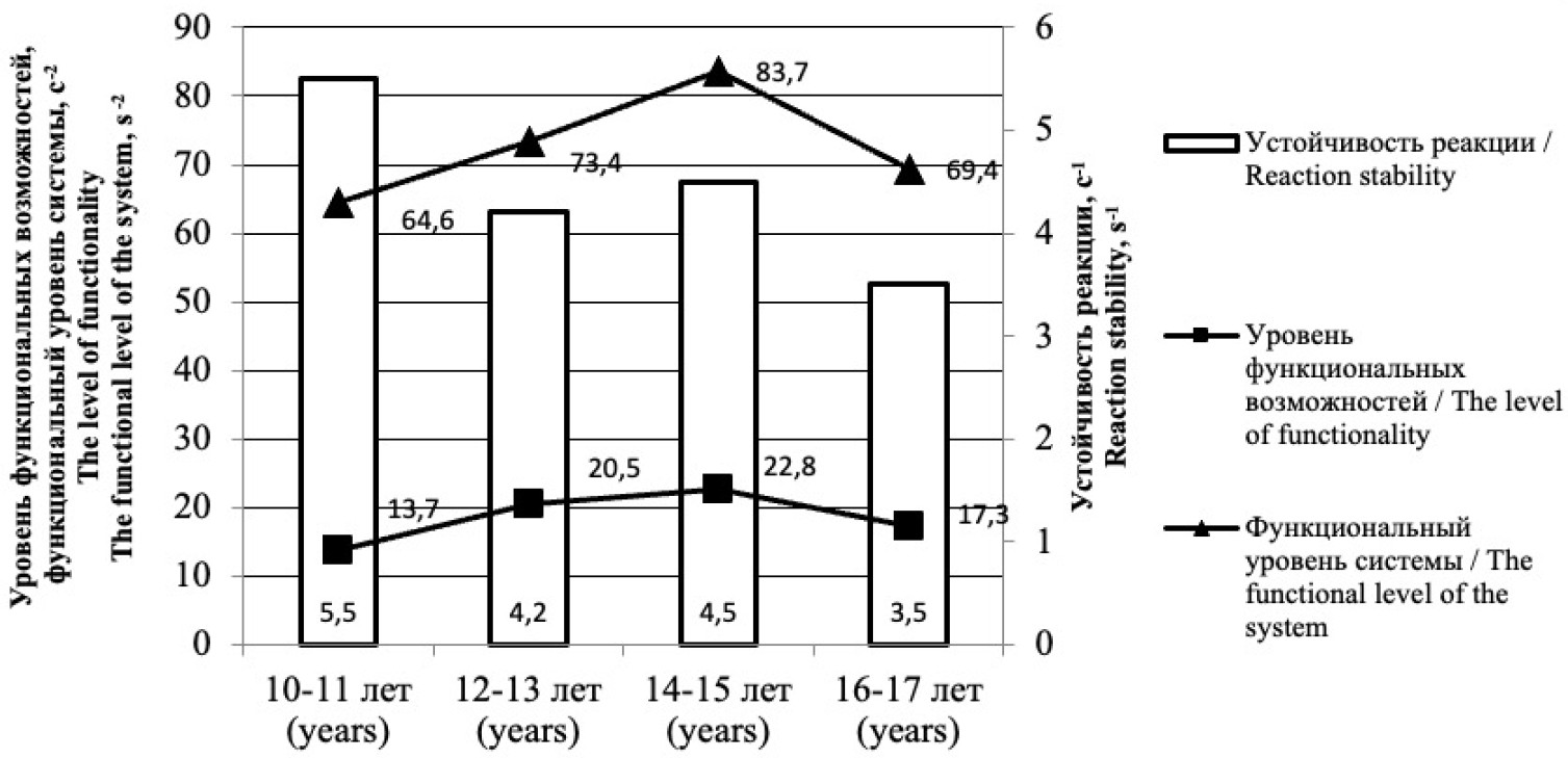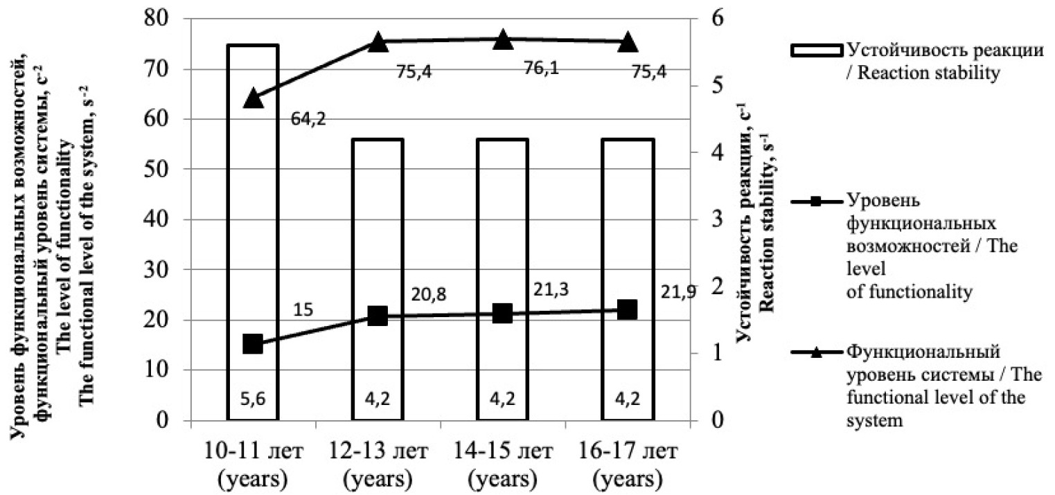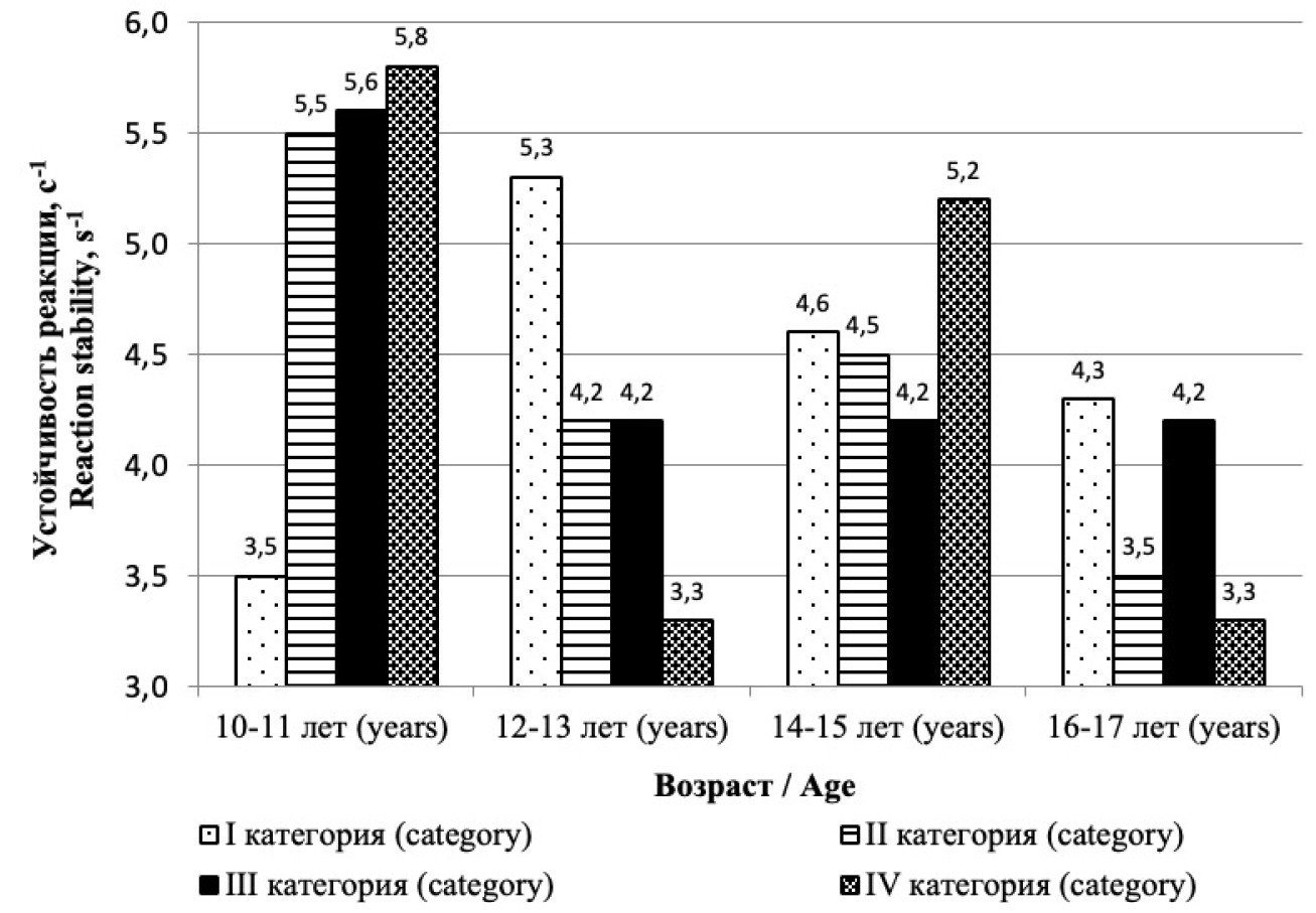 Fig. 1. Comparative analysis of reaction stability among students of different ages (М)