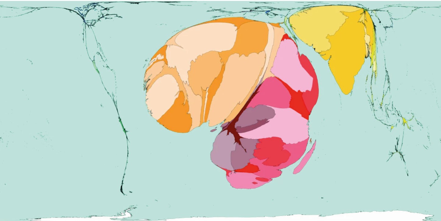 Fig. 3. Cartogram of colorectal cancer mortality in the world