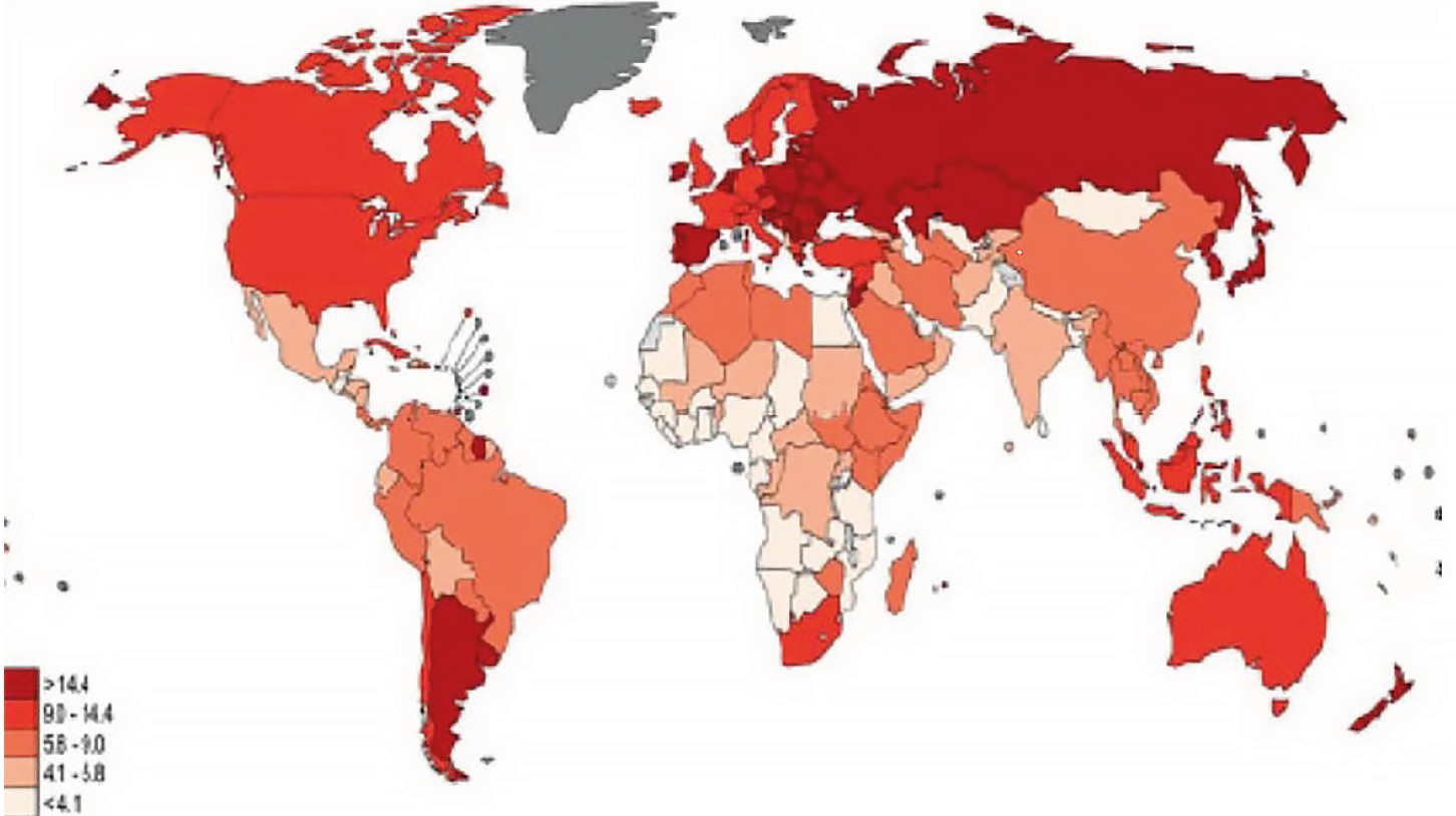 One of the decisive factors for creating maps is their availability. And this factor faces the challenge of collecting and evaluating data at the international level. To date, we can track the improvement in the statistics of the data provided by WHO. There has been an increase in the number of States that provide data for the formation of global statistics. However, due to the large amounts of information, it is worth stating for sure that the quality of the data provided to WHO is different. The baseline data, which is publicly available, includes an indicator of the level of uncertainty for each country for each cause, as well as a set of confidence limits for all-cause mortality in each country. Even in what is the most reliable, there are still problems of uncertainty. However, according to literary sources, today the modernization of processes is still underway and there has been an improvement in the situation compared to ten years earlier. An indicator of these improvements is the report “World Mortality in 2000: Mortality tables for 191 countries”, which was published because this information is key to shaping the further development of health policy [8].