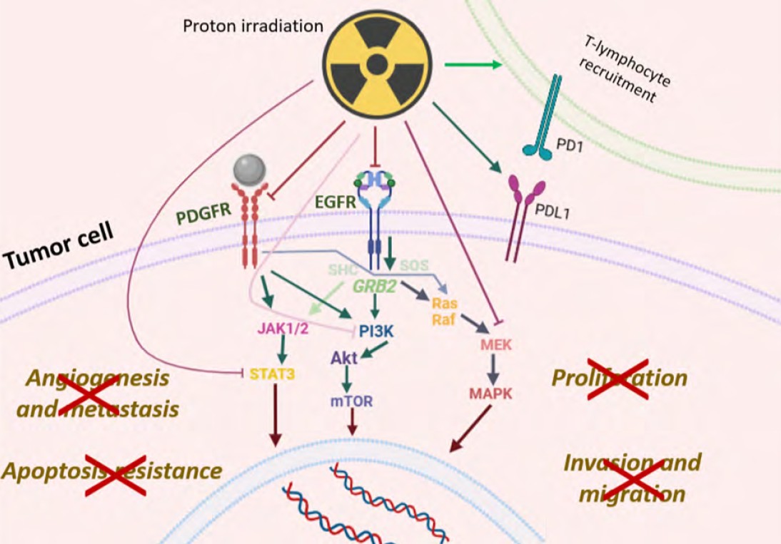 Figure 2. Impact of proton irradiation on cancer cell signaling pathways