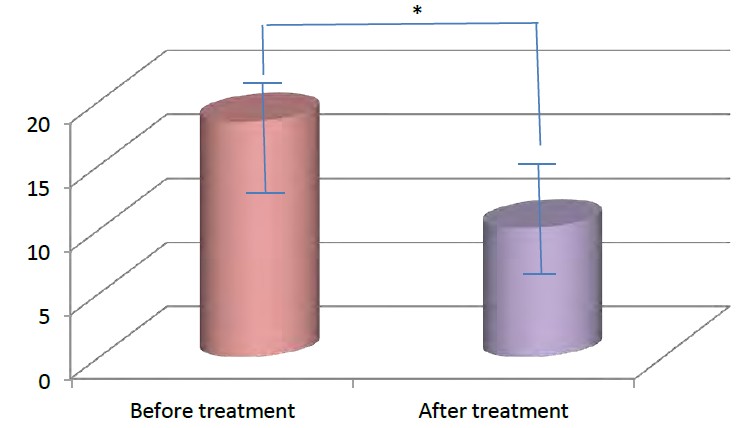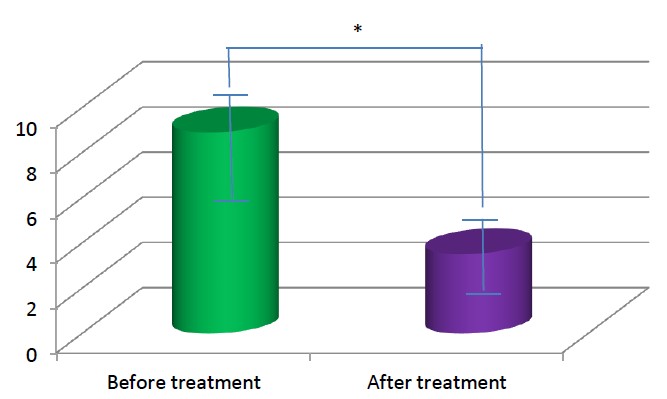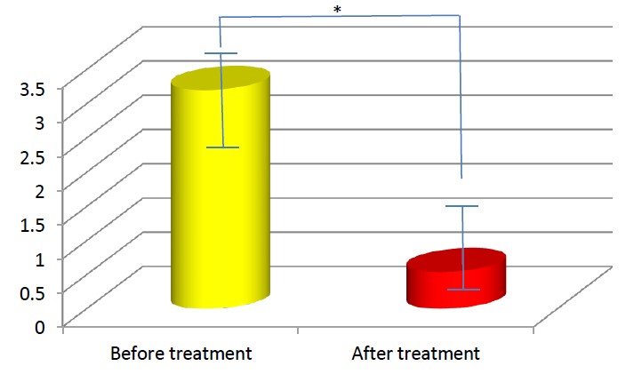 Serum MM concentration before treatment, was elevated 6.2‑fold — 3.22 ± 0.12g/l in the main group and 3.19 ± 0.12g/l in the control group, with normal being 0.52 ± 0.03g/l, (P < 0.05), indicating the presence of metabolic intoxication syndrome in patients with CNC against CDLD background. Also, in both groups of examined patients before treatment characterized by increased blood LPO products-MDA and DC. Thus, these biochemical parameter changes indicate metabolic disorders (Table 1).