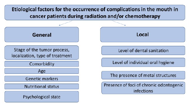 Fig. Etiological factors for the occurrence of complications in the mouth in cancer patients during radiation and/or chemotherapy
