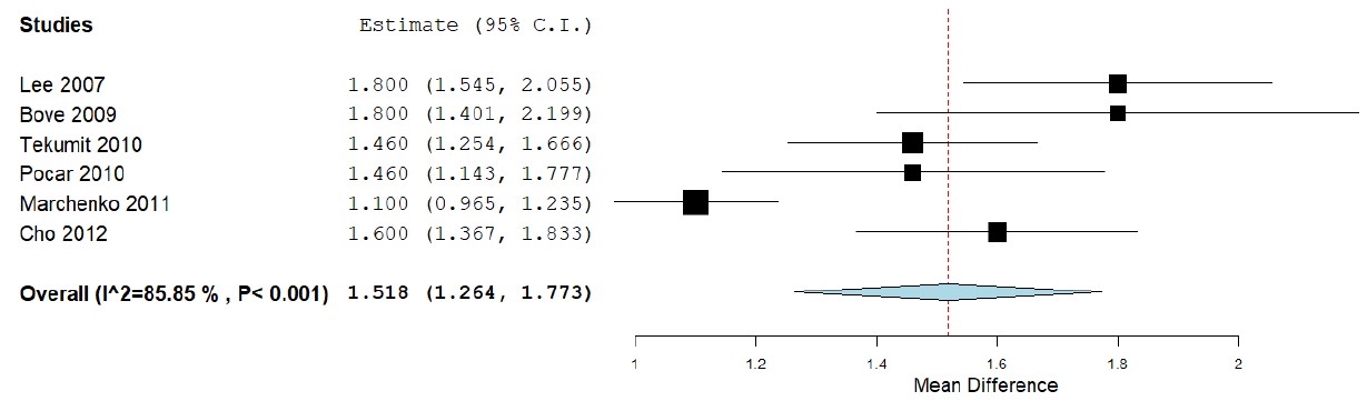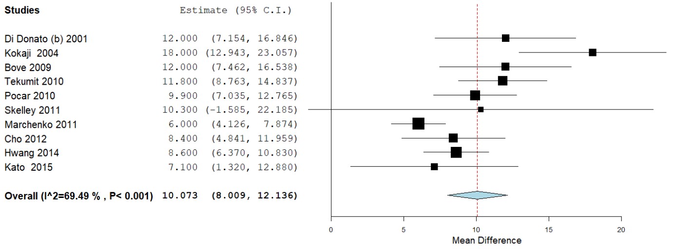 Fig. 9. Forest plot for the meta-analysis of cardiac index before and after surgery