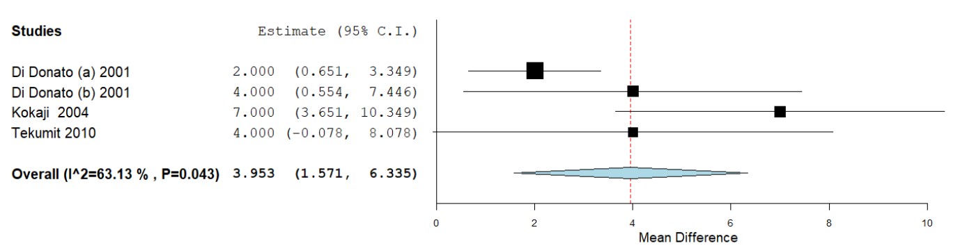 Fig. 7. Forest plot for the meta-analysis of EF before and one year after surgery
