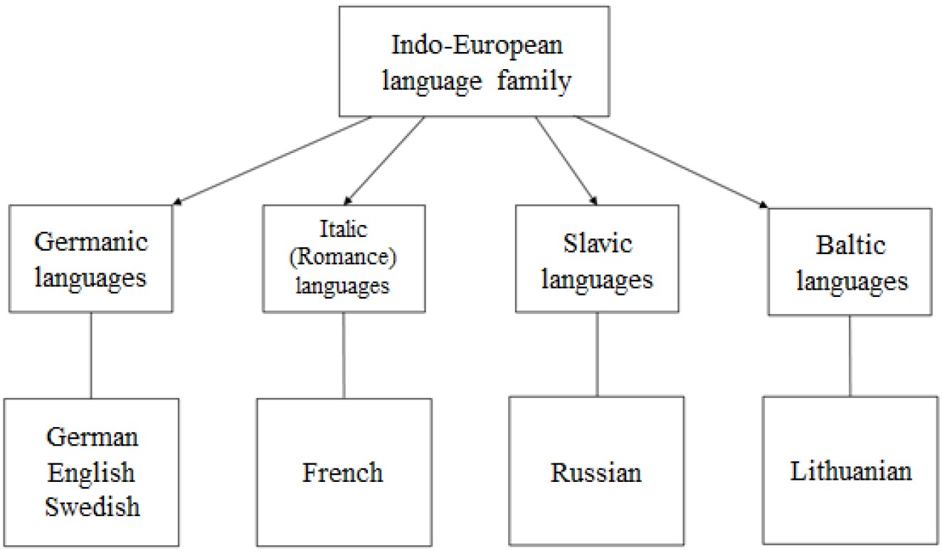 Figure. 1. Modern languages spoken by V. Sesemann and their affiliation to language sub-families