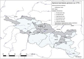 Figure 3. The redistribution of territories among the administrative centers, 1779-1784