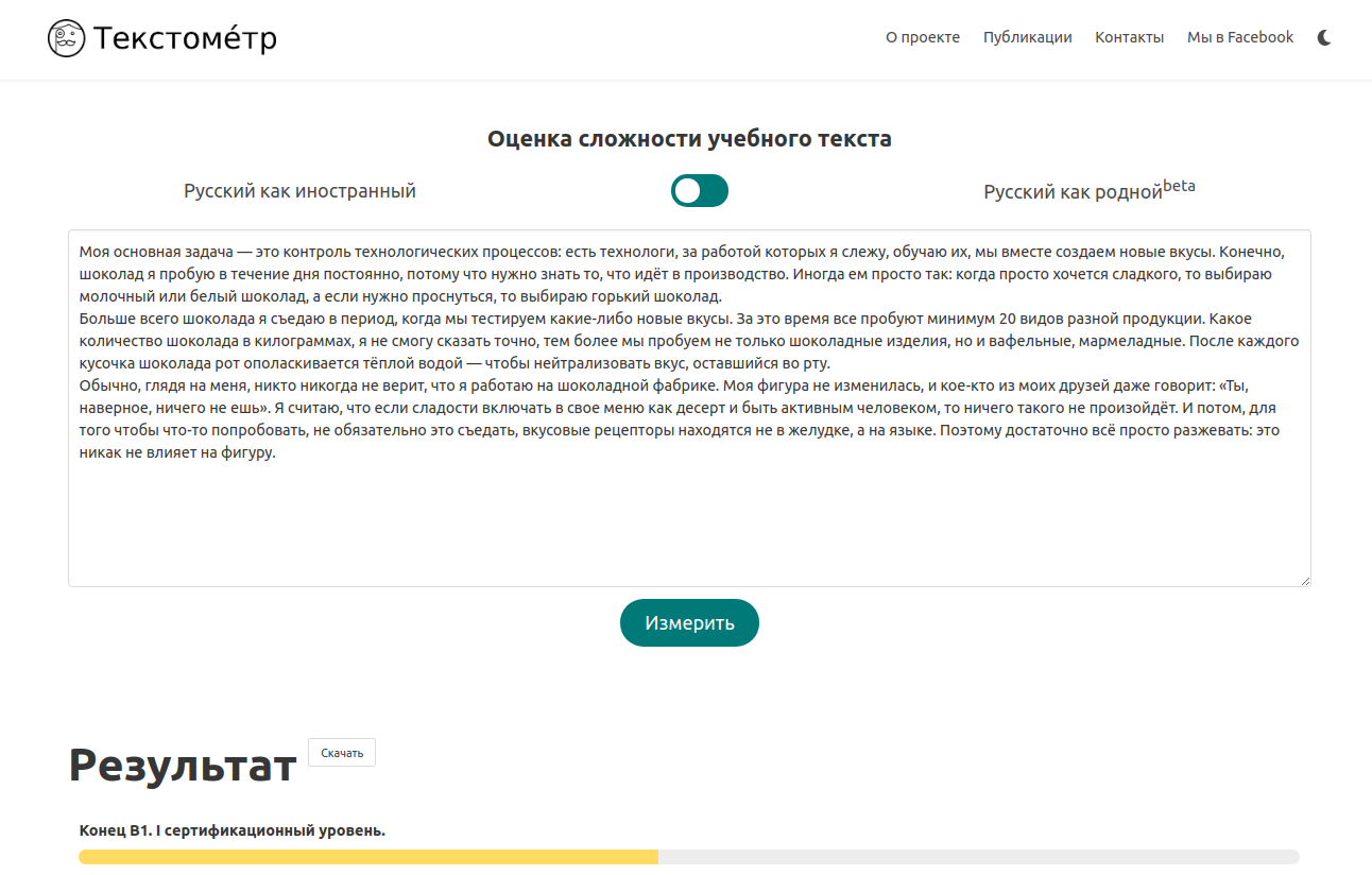 Textometr: an online tool for automated complexity level assessment of texts for Russian language learners