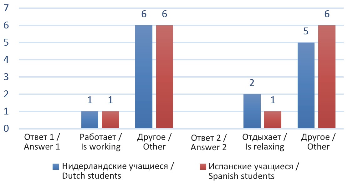 Как представлено на рис. 4, в данном задании преимущественное большинство учащихся (79 % нидерландских учащихся и 82 % испанцев) в обеих группах дали правильные ответы.