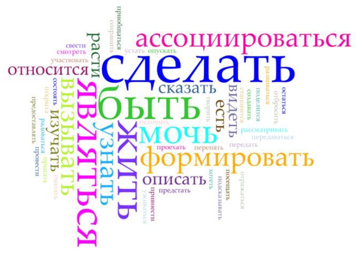 Figure 4. Cloud of verb forms (by frequency in SC_4_Ess_CRF) in “The culture of the Russian Federation” field
