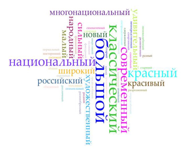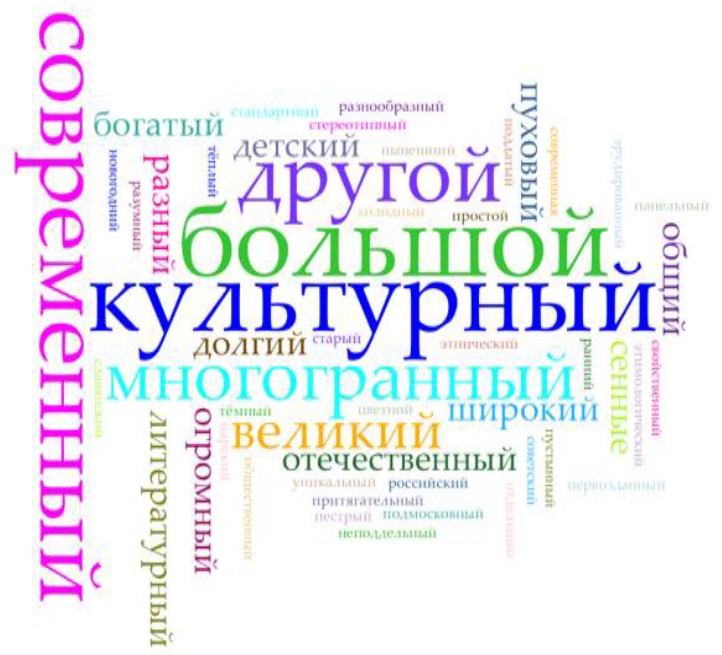 Figure 6. Cloud of adjectives (by frequency in SC_4_Ess_CRF) in “The culture of the Russian Federation” field