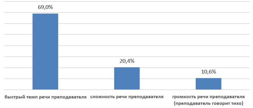 ‒ too quiet – “the teacher speaks very quietly” (10.6%).