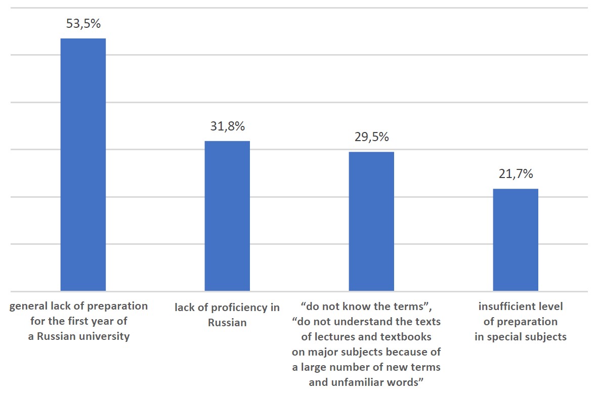 The first group includes the following problems, which were indicated by foreign first-year students in their answers: