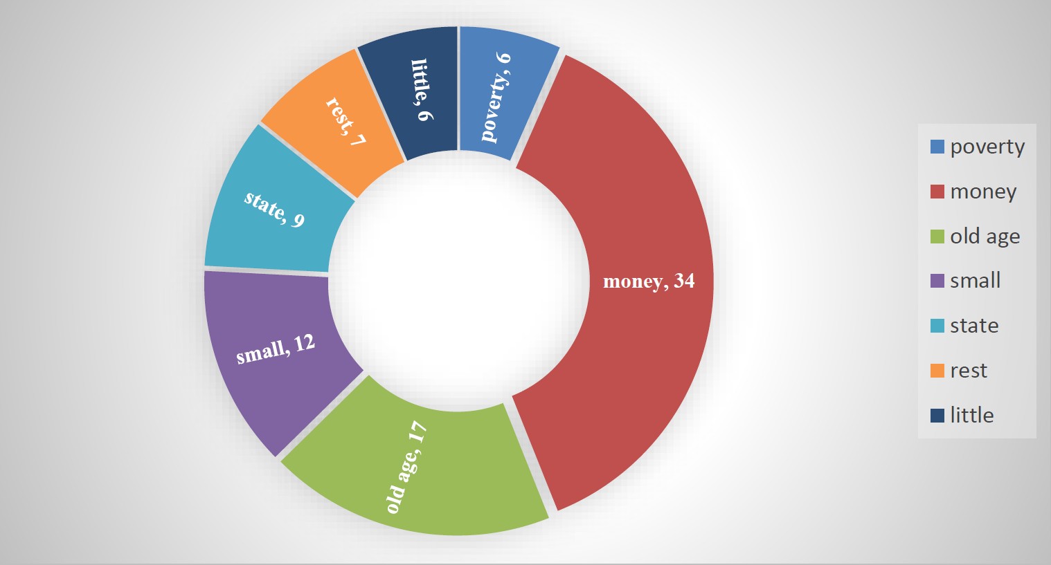 The stimulus pension got 135 reactions from respondents – native Russian speakers. There are no stimuli pension and pensioner in the associative dictionaries of the Russian language. The most frequent reactions to the stimulus pension is presented in Figure 4.