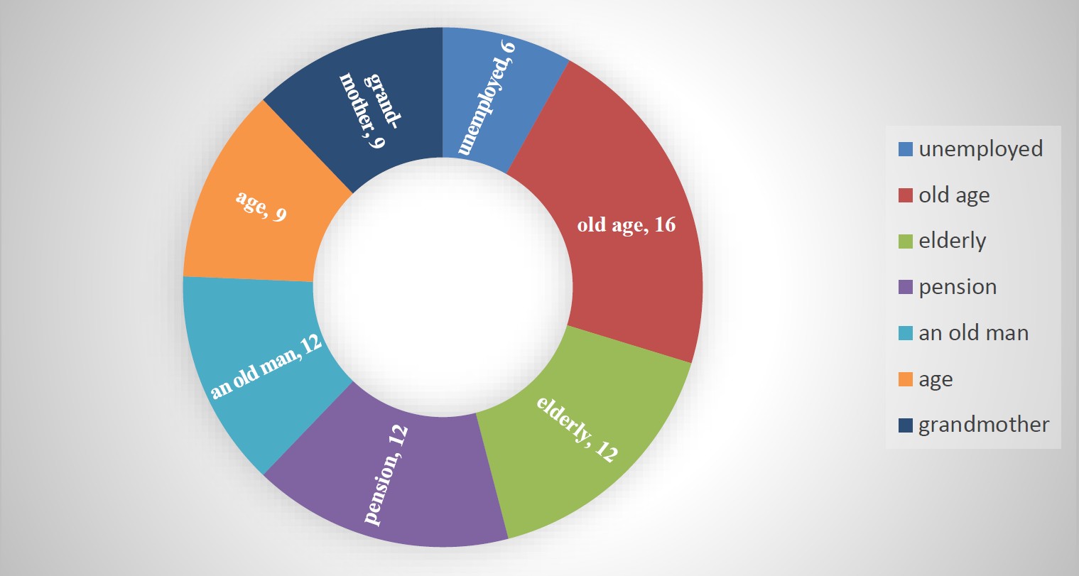 We should note that in Russian linguistics there is a small number of scientific works describing the above-mentioned concepts and revealing their value, figurative and conceptual features: the concept of pension (Denisenko et al., 2022), the concept of aging (Blinova, 2009; Burnaeva, 2011; Kudryashova, 2018; Valiyeva, 2010; Safaralieva, 2021). Under the influence of socio-economic factors, reforming the pension system of the Russian Federation, the perception of old age by the speakers of Russian linguistic culture has changed: old age is now perceived not so much as the final period of a person's life, but rather as the period of life during the old-age pension. Thus, the description of the value “attitude to the elderly people” in Russian culture, represented by the value attributes of the concept old age, will be incomplete without modeling the concept pension.