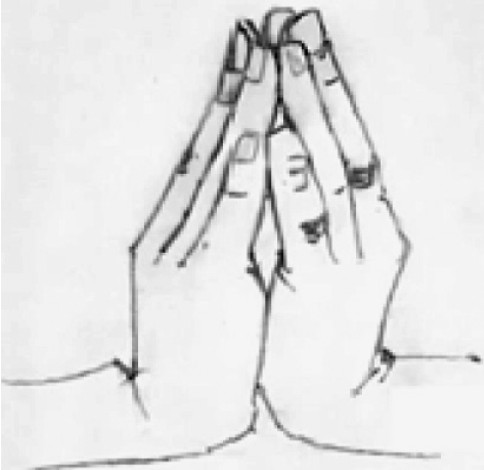 - Palms pressed together at chest level, as in prayer (fig. 7).