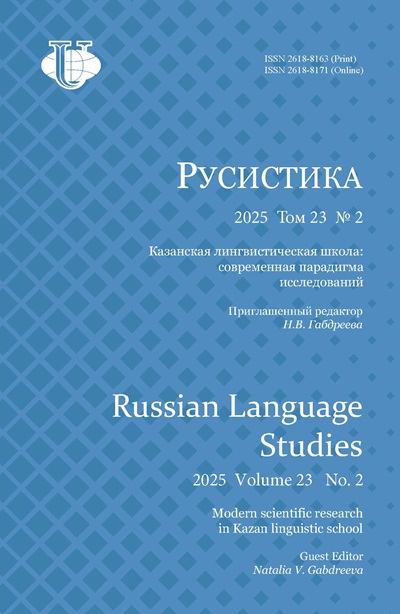 - Выпуск: Том 23, № 2 (2025): КАЗАНСКАЯ ЛИНГВИСТИЧЕСКАЯ ШКОЛА: СОВРЕМЕННАЯ ПАРАДИГМА ИССЛЕДОВАНИЙ